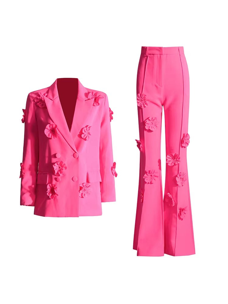 Discover the beauty and sophistication of the Elegant Pink Set, the ideal choice for those looking for a striking and delicate look. This set includes a refined suit and pants, designed to enhance your figure and provide a touch of elegance.