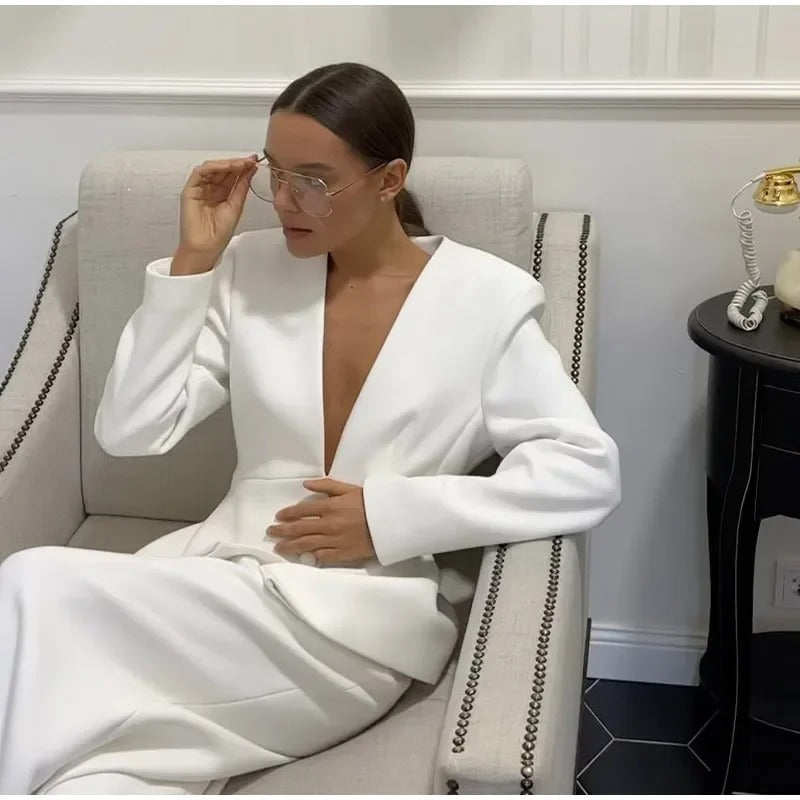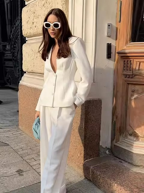 Experience the lightness and elegance of the 2-Piece White Women's Set, the ideal choice for those looking for a sophisticated and uncomplicated look. This set includes a coordinating lightweight suit and pants, designed for comfort and style on warm days.
