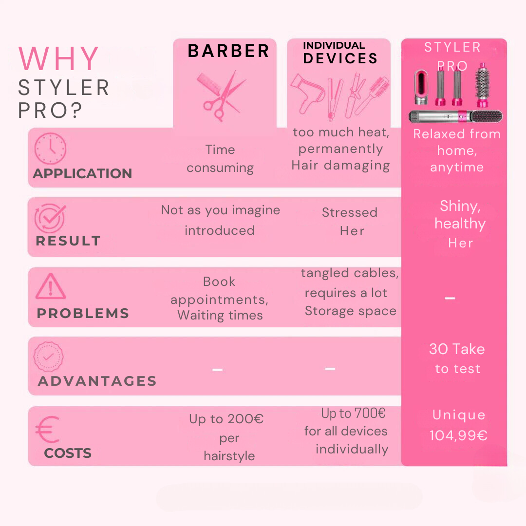 The StylerPro is the solution for perfectly styled hair in just a few minutes.