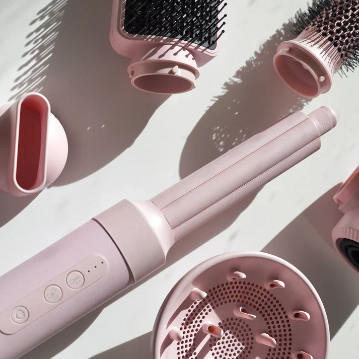 The 7 in One Hot Air Brush features both a left and right curling barrel, each utilizing the power of air to automatically wrap and style your hair effortlessly.