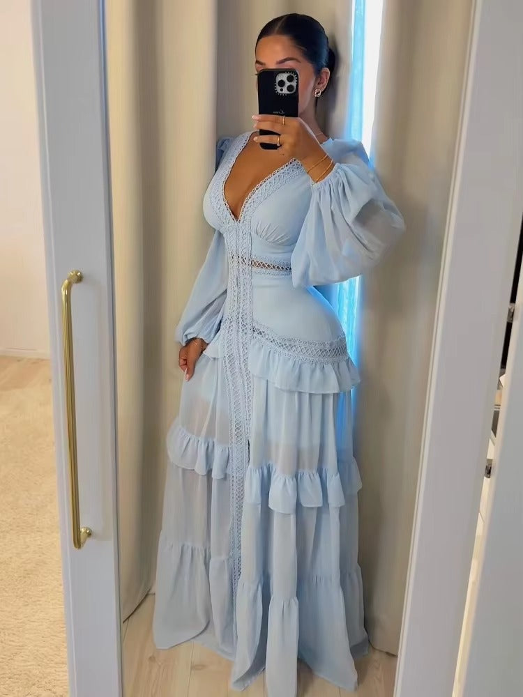 Chic Maxi Dress With Long Sleeves And Ruffles