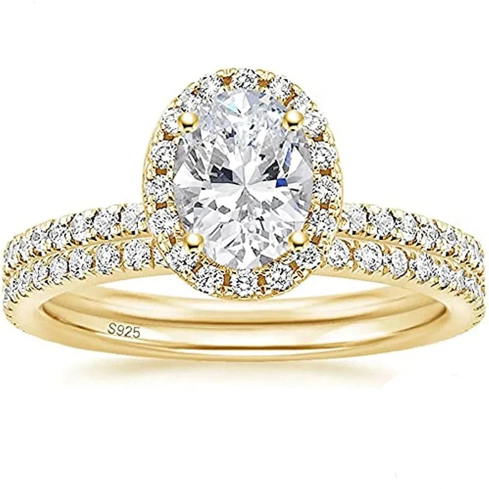 This double engagement ring, with a moissanite diamond stone, is the perfect item for such a special moment. The gold plating adds a delicate and luxurious touch, making it even more special. Surprise the one you love with this unique ring.