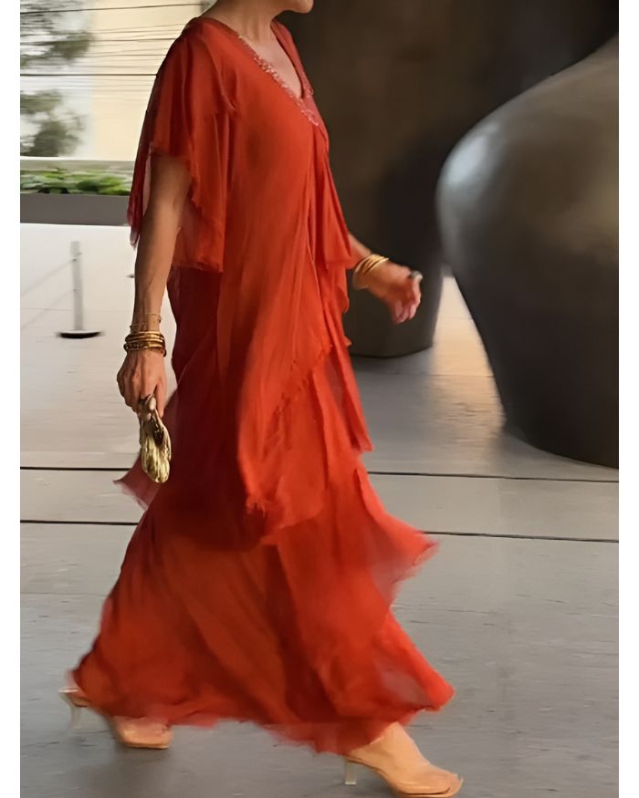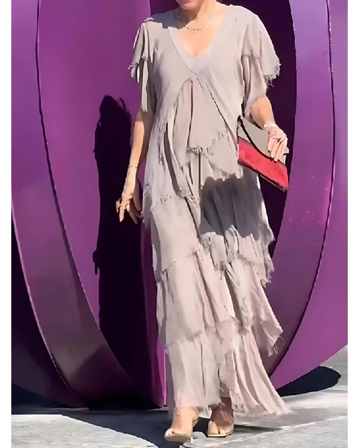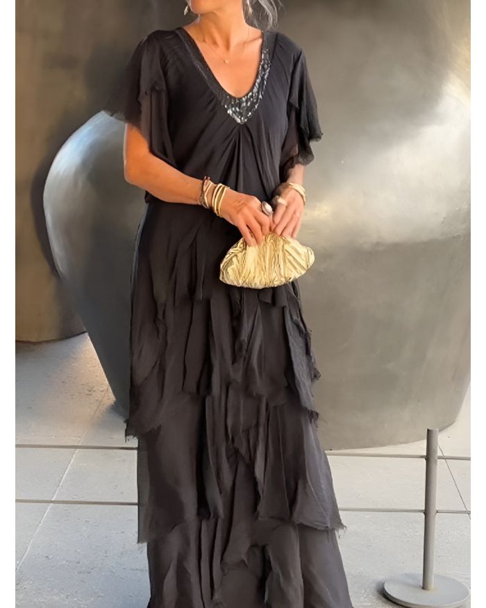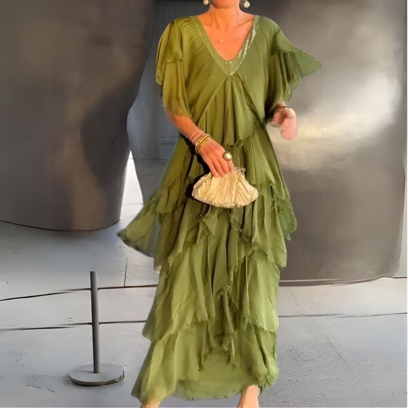 Step into timeless elegance and superior comfort with this season's essential dress. Perfect for any occasion, this piece combines a chic V-neck design with a flattering fit, making you feel both confident and stylish wherever you go.