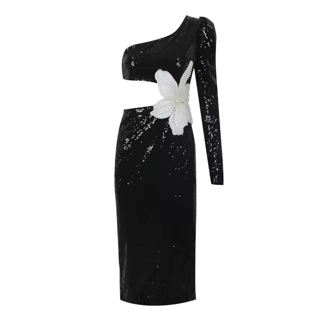Hollow Out Flower Detail: Chic hollow-out flower pattern enhances the dress's allure, perfect for evening parties.