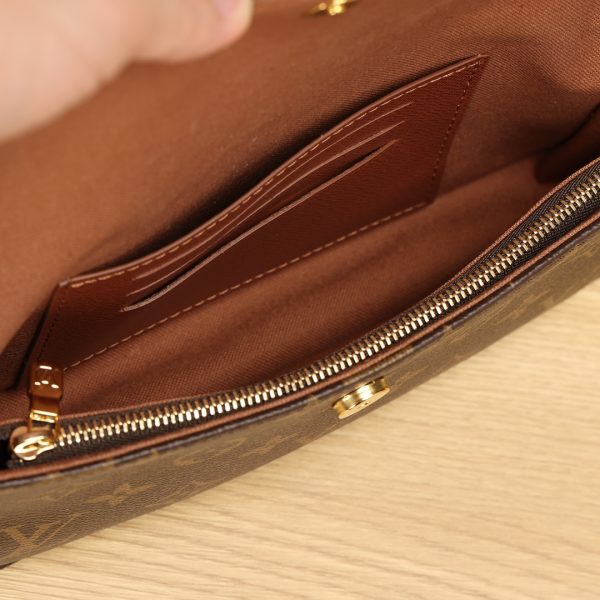 The Monogram Chain Wallet is made from Monogram canvas, inspired by the Sac Recoleta bags of the 2000s. The card compartment and internal zippered pockets can hold everyday essentials, and the adjustable chain and leather shoulder straps are removable, allowing for long or short shoulder and cross-body options.