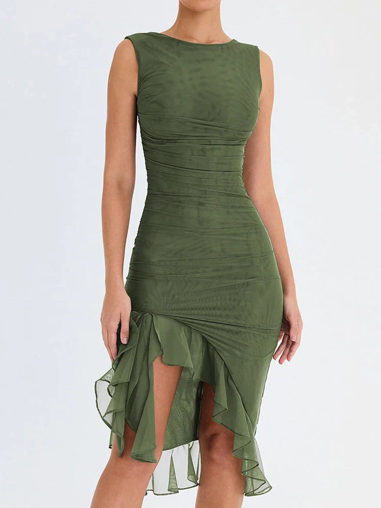 Timeless beauty: This midi dress with ruffles and frills transcends seasons and trends, becoming a staple in your collection. Its timeless design ensures that it remains a favorite choice year after year.