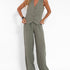 The style of the Sleeveless Vest and Wide Leg Pants Set can be described as relaxed and versatile. The sleeveless vest adds a touch of sophistication, while the wide-leg pants offer a comfortable and effortless look.