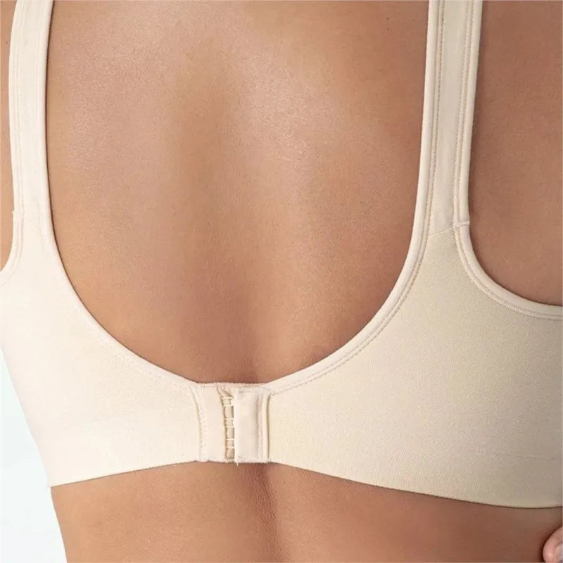Transform your everyday life with our revolutionary wire-free bra . Designed for ultimate comfort and style , our bra eliminates constant pinching and scratching and offers a smooth and seamless fit for every body type. Our innovative breathable and stretchy fabric technology keeps you comfortable all day long , no matter what your busy schedule demands of you. The extra-wide straps distribute weight evenly, reducing the strain on your shoulders and providing extra support for a confident , comfortable look.
