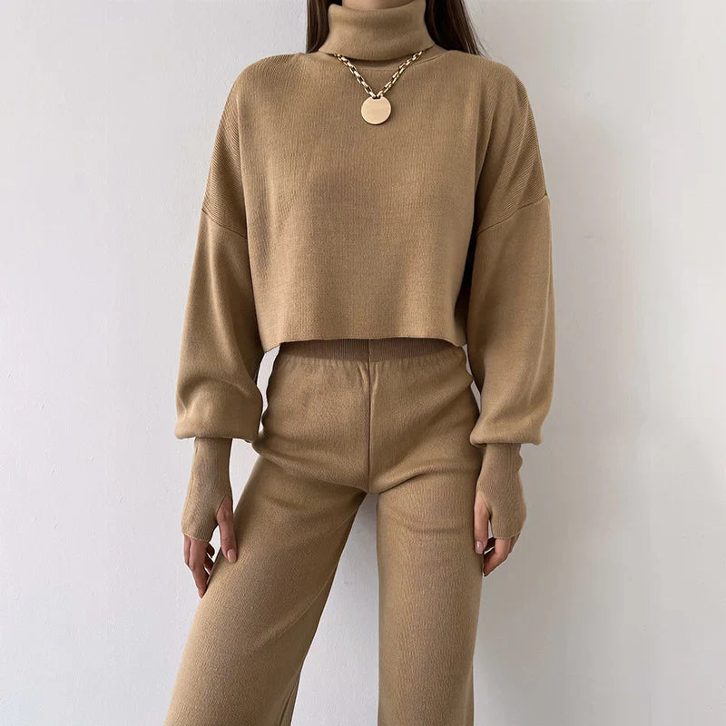 Look effortlessly chic with the Turtleneck Crop and Pants Set! Crafted from incredibly soft knit fabric, this set features a high-neck crop top, elasticated waistband pants, and an alluring silhouette. Elevate your outfit for any special occasion with this stylish set!