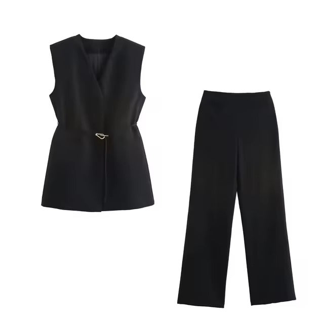 Experience the comfort and versatility of the Women's Casual Vest And Pants Set. This set is ideal for those looking for a relaxed and elegant look, perfect for everyday or informal occasions.