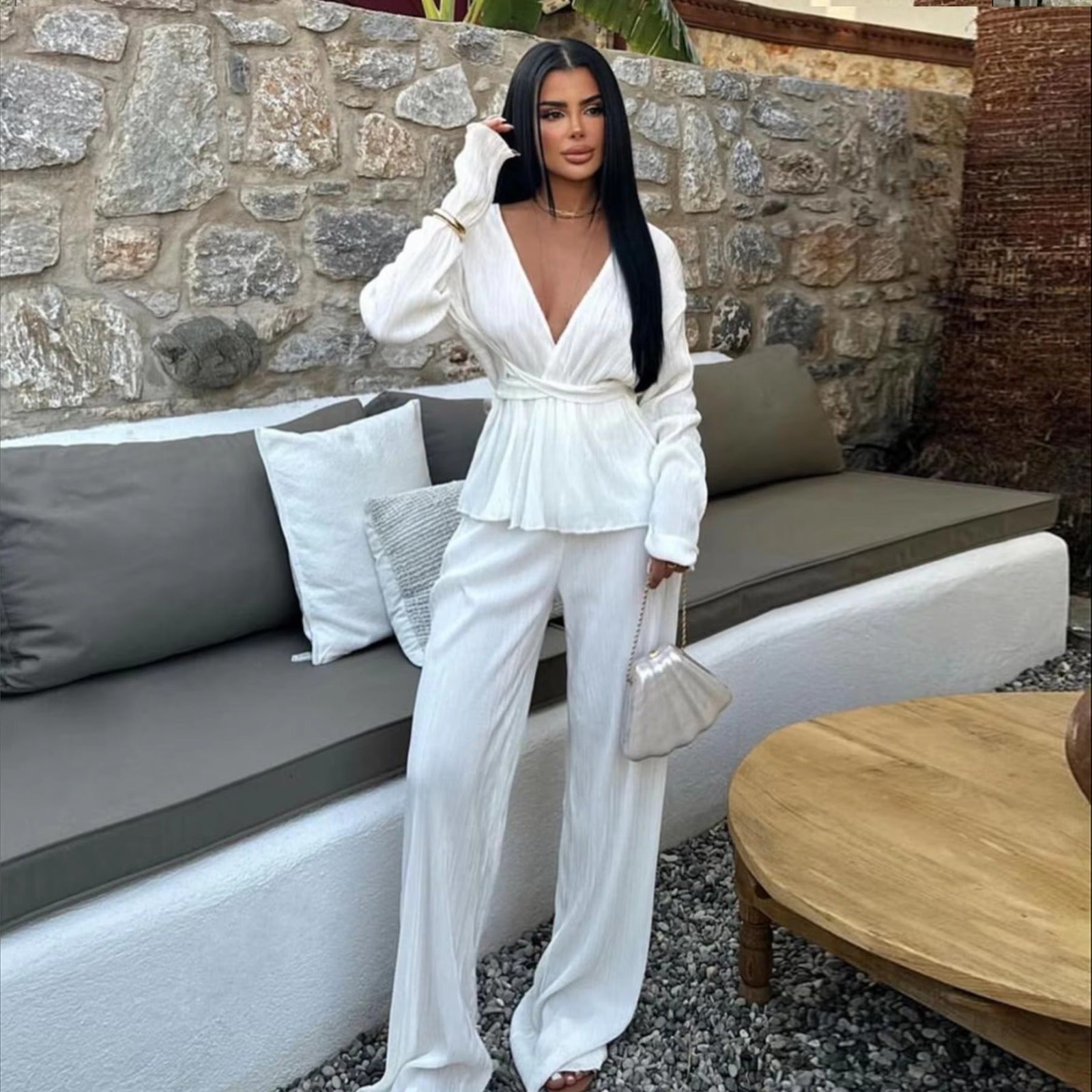 Transform your style with the Women's Chic Set, the ideal choice for those who want a sophisticated and contemporary look. This set consists of a blouse and pants, designed to offer comfort and elegance for any occasion.