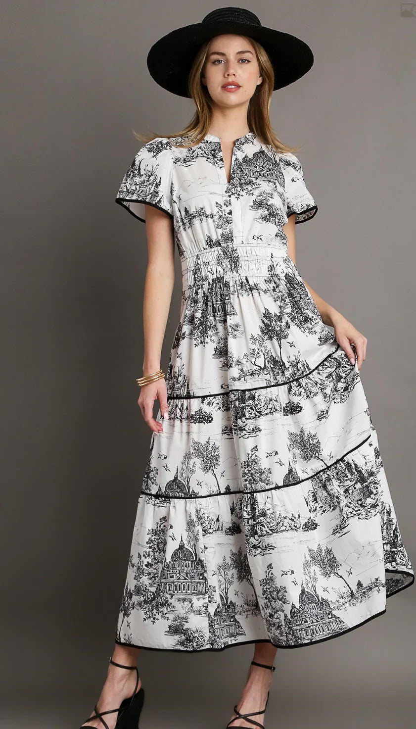 Get ready for fall with our classic dress! This versatile dress can be worn to work, church or for chic, feminine everyday style. The midi length and smocked waist add a touch of elegance, while the black toile print adds a unique touch. Don't miss out on this must-have dress!