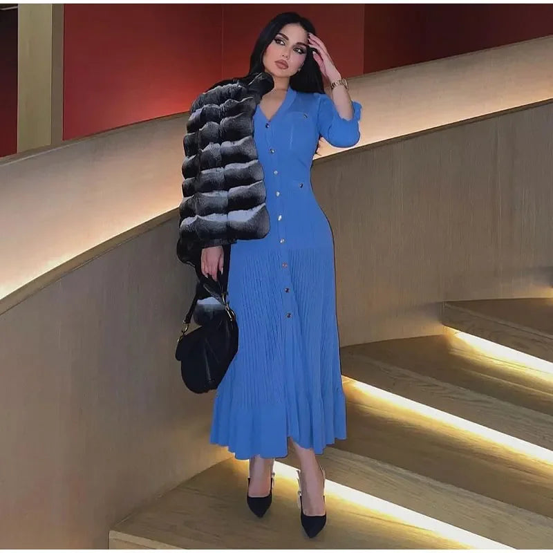 With the Women's Knitted Dress, you'll be ready to face the cold with style and comfort. Get it now and enjoy a cozy and elegant look all season long.