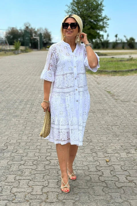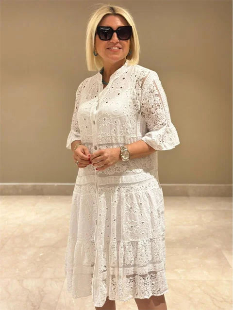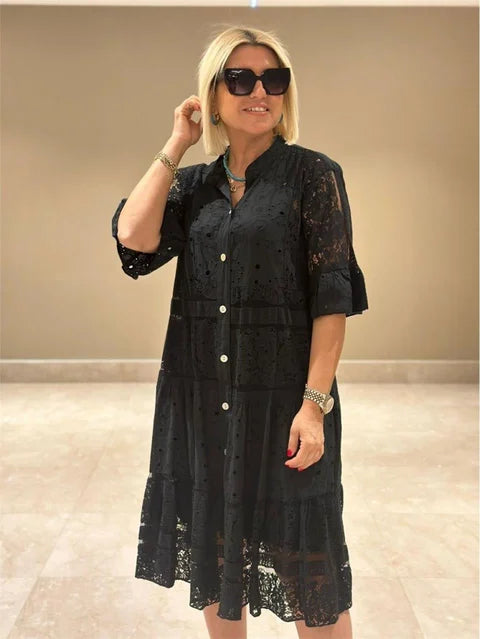 Experience the elegance and comfort of the Women's Mid-sleeve Dress. This three-quarter sleeve dress is the perfect choice for those looking for a versatile and modern look for everyday wear or special occasions.
