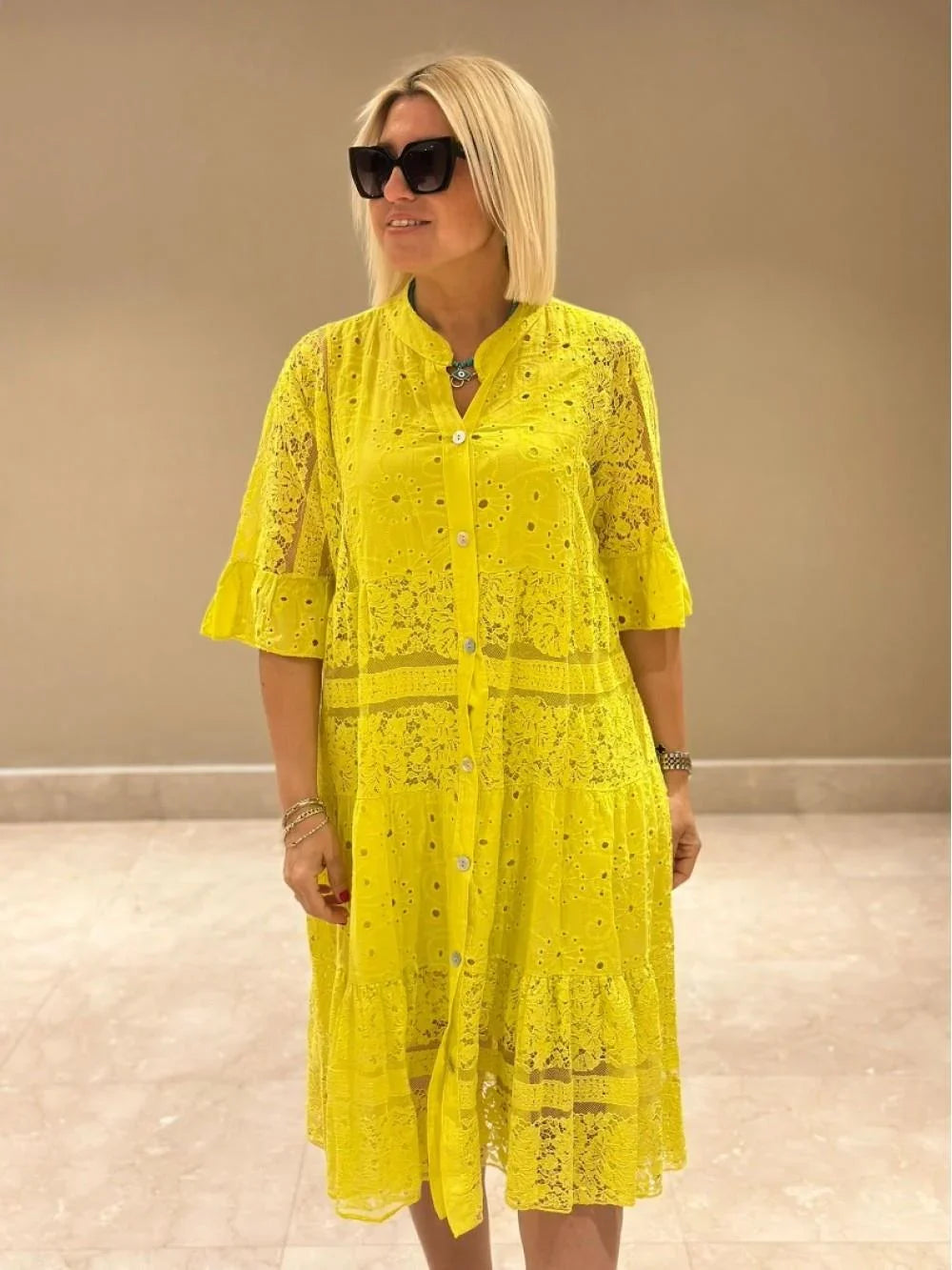 The three-quarter sleeve dress offers a touch of sophistication and style, while the impeccable fit and comfortable fabric ensure an elegant and modern look.