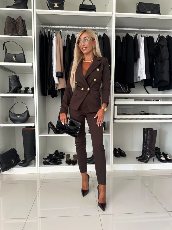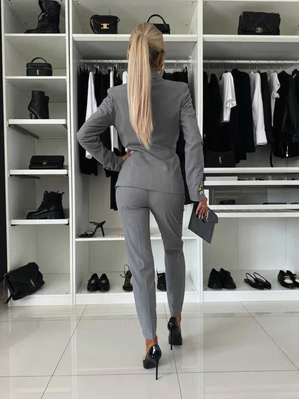Present yourself with confidence and style using the Women's Two-Piece Formal Set. This set includes a refined long-sleeved suit and pants, designed to create an elegant and professional look that adapts to a variety of occasions.
